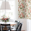 Many layers of color add depth and vibrancy to twining branches beautified by a variety of petite and voluminous blossoms in pattern Beatrix. Seen here in a palette of coral, blush, raspberry, sage, forest green, taupe, beige, cream, pale yellow, brown, and white. Beatrix is an unpasted, non woven wallpaper measuring 27 inches wide by 27 feet long, covering approximately 60.8 square feet per roll.