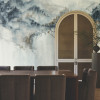 Mystic Overlook's artistic rendition of a mountain range captures the ethereal quality when the peaks are surrounded by fog. Seen here in shades of blue, grey, and brown against off-white. Mystic Overlook Blue Wall Mural comes on 4 panels.
