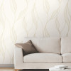Metallic dashes form the minimalist linework that shapes Society Hill's twining leaf motif. Seen here in metallic gold and cream against white. Society Hill is an unpasted, non woven Wallpaper.